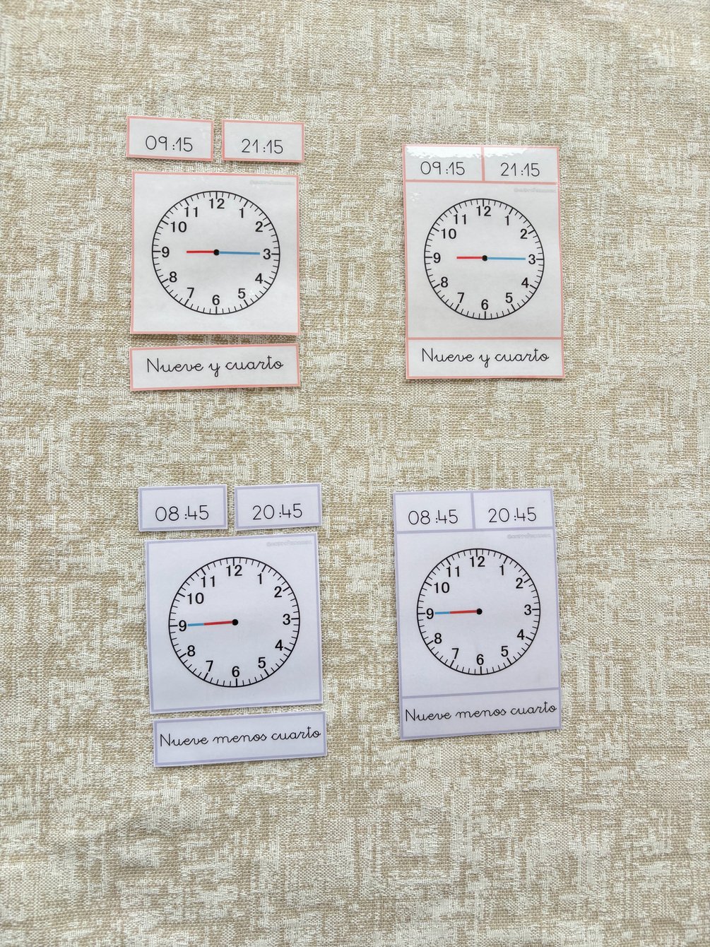 Material tipo Montessori (tarjetas tres partes) para trabajar las horas en reloj analógico y en reloj digital ⏰